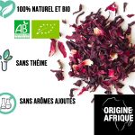 Nos fleurs d’Hibiscus sont certifiées agriculture biologique : leur culture a été réalisée sans utiliser de produits chimiques pour respecter la Nature et votre santé.