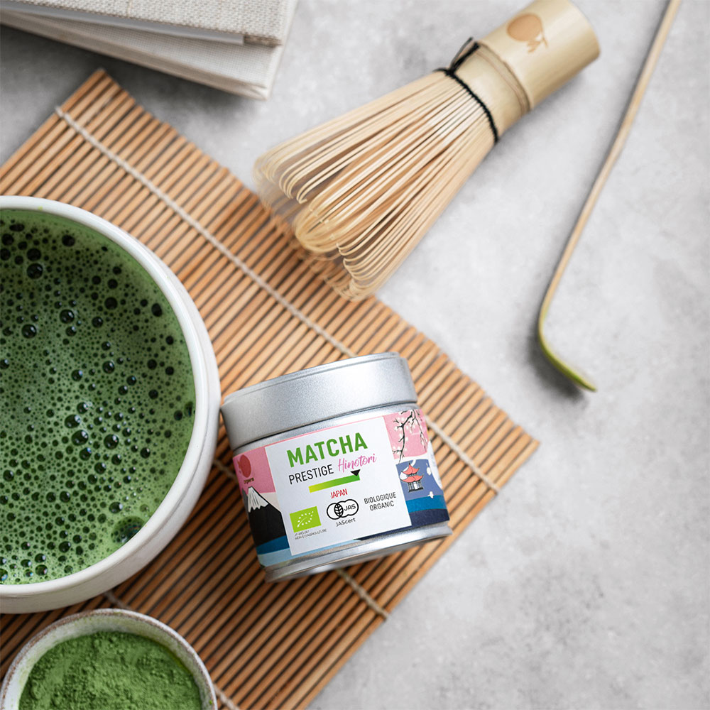 Le matcha est une boisson au charme indéniable : ses bienfaits, sa saveur originale, sa couleur, sa préparation rituelle et relaxante, sa multiplicité d’utilisation (en matcha latte, pâtisserie…), sa capacité à nous faire voyager au Japon… autant de raisons de le découvrir !