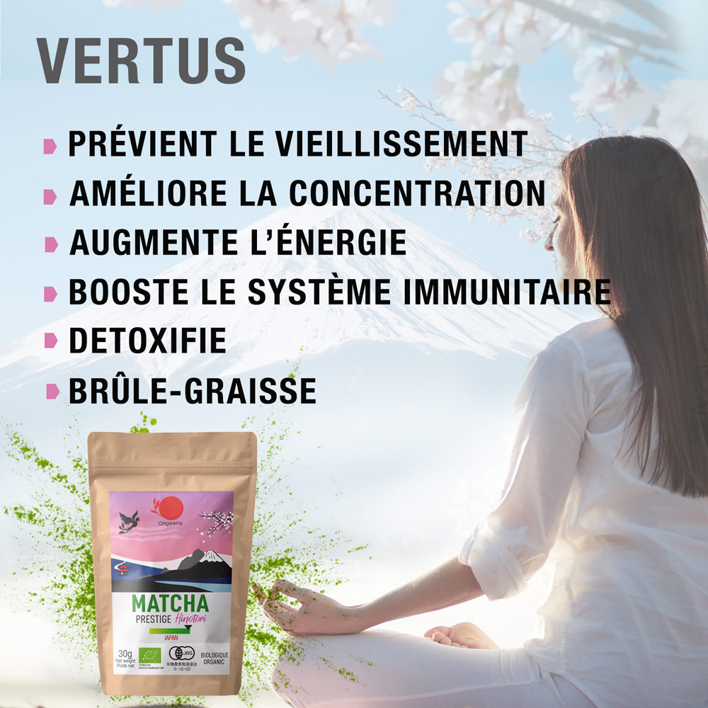 Le matcha est une boisson au charme indéniable : ses bienfaits, sa saveur originale, sa couleur, sa préparation rituelle et relaxante, sa multiplicité d’utilisation (en matcha latte, pâtisserie…), sa capacité à nous faire voyager au Japon… autant de raisons de le découvrir !